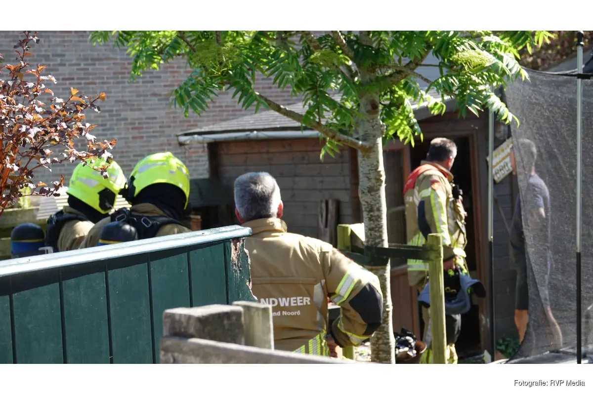 Bij aankomst bleek er een brandje te hebben gewoed in de schuur achter een woning.