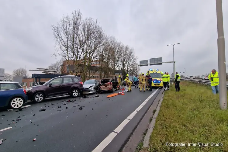 Vlak na de Leeghwaterbrug reden de voertuigen tegen elkaar. Het gaat vermoedelijk om een kettingbotsing. Er zijn drie ambulances ter plekke gekomen. Brandweerlieden hebben één persoon uit een auto geknipt. Uiteindelijk zijn twee personen naar het ziekenhuis gebracht.