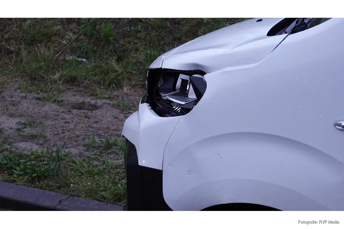 Het busje liep bij het ongeval schade op.