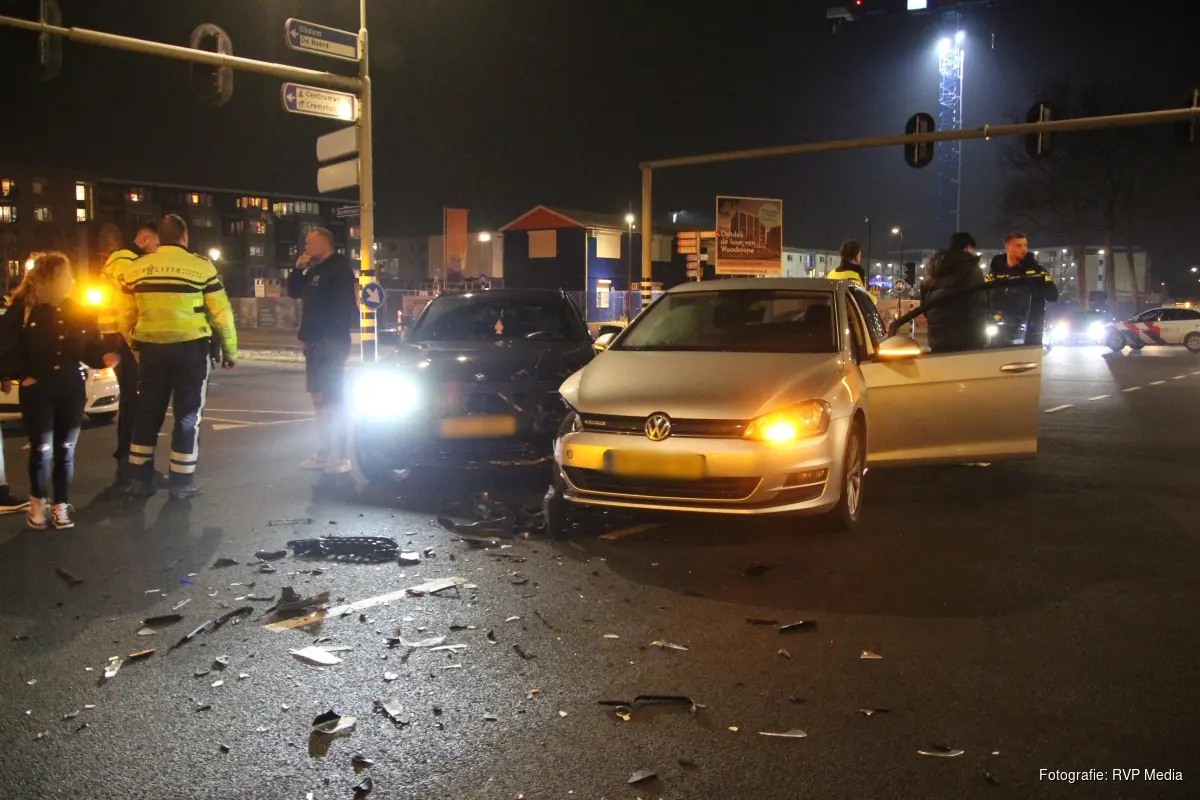 Twee personenauto's kwamen op de kruising met elkaar in botsing en raakten daarbij flink beschadigd. Volgens getuigen ter plaatse zou de zilverkleurige wagen, welke richting Winkelcentrum Middenwaard ging, door rood zijn gereden en in botsing zijngekomen met auto die net afsloeg na groen licht. De politie deed nog enige tijd onderzoek naar de toedracht van het ongeval.