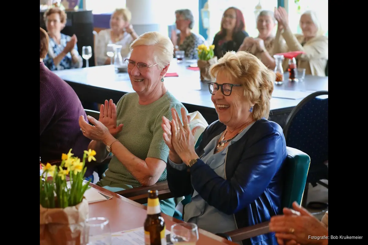 HEERHUGOWAARD – In De Raatstede kwam op 8 april alles samen: waardering, ontmoeting en oprechte trots. Tijdens het jaarlijkse vrijwilligersfeest van De Pieter Raat Stichting zijn ruim 300 vrijwilligers in het zonnetje gezet. Met een muzikaal optreden van René Bes, een smaakvol buffet van het gastronomieteam en vooral veel mooie woorden en gezelligheid. Er werd gedanst en zelfs een polonaise gelopen. Opvallend detail: vrijwilligerscoördinator Yvonne Schouten en de welzijnscoördinatoren verschenen in een broek of blouse met pauwenprint en verwoordde daarmee treffend het gevoel van de avond: ,,Wij zijn zo trots als een pauw op onze vrijwilligers. Wat zij betekenen voor onze senioren is niet in cijfers te vangen. Maar vandaag hebben we toch een poging gedaan.”