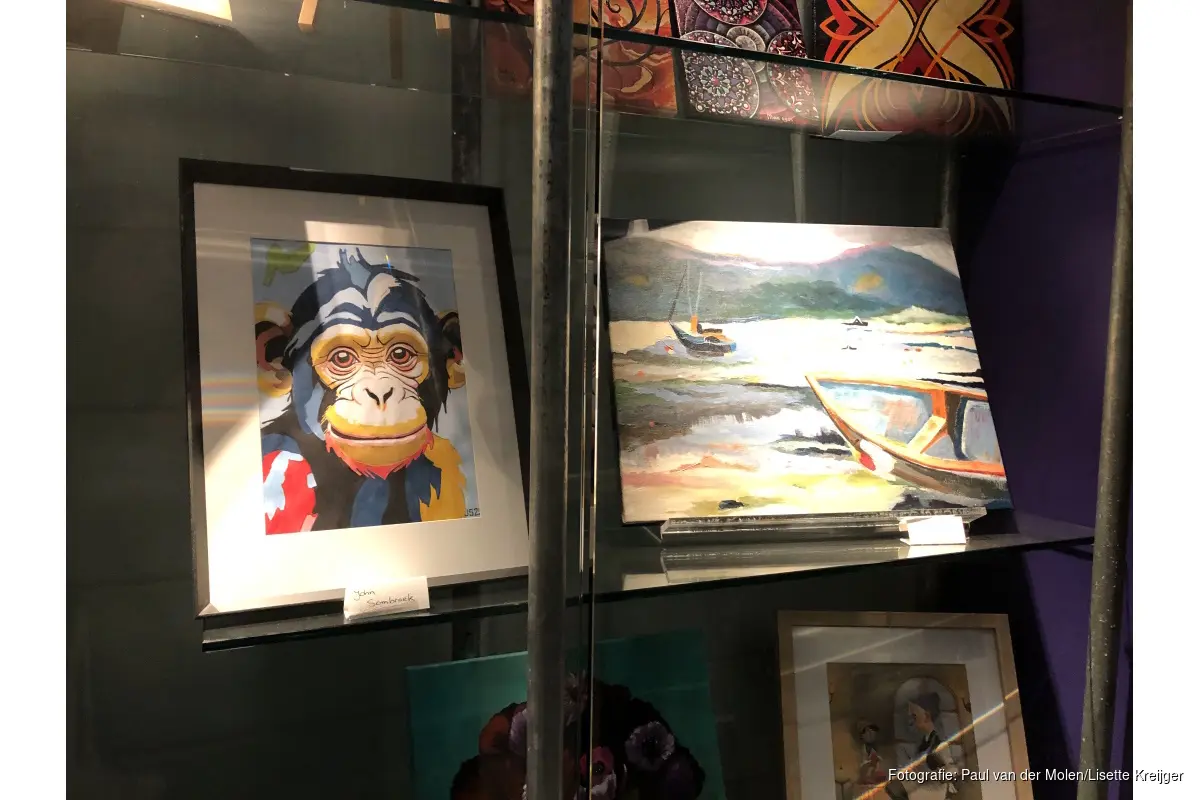 DIJK EN WAARD – “Een drukbezochte dag, met veel inschrijvingen, maar er zijn ook nog plaatsen open!” De voorzitter van Atelier 6, John Sombroek, sprak tijdens de slotborrel vol lof over de open dag van Atelier 6 die op 11 januari jl. plaats vond. Het atelier dat al sinds 1980 bestaat, volledig gerund door vrijwilligers, is gevestigd aan de Daltonstraat 11a te Heerhugowaard met vier prachtige lokalen waar van alles te beleven valt. Je kunt op diverse dagen in de week een cursus volgen (met sturing van een docent) of meedoen met een werkgroep (zonder sturing van een docent, maar waar wel een ervaringsdeskundige bij is die tips geeft). “Het is de voldoening van het zélf dingen maken,” aldus Sombroek, die zelf het fraaie chimpansee-werk creëerde dat je bij binnenkomst ‘begroet’. De kunst die die dag tentoongesteld werd is van hoge kwaliteit.