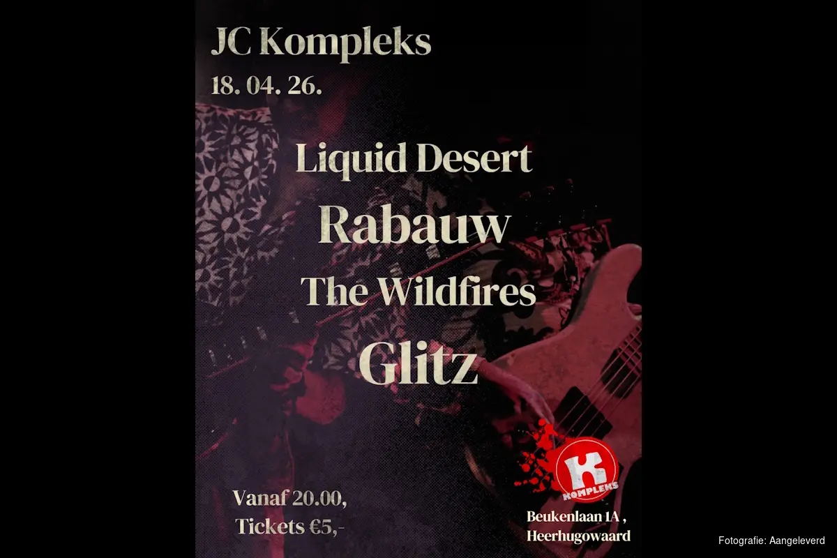 HEERHUGOWAARD - Op zaterdag 18 april spelen er vier regionale topbands in JC Kompleks. De avond gaat van pure rock, via funky grunge, Nederlandstalige punk tot glamrock.